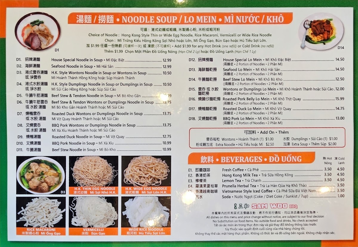 Sam Woo BBQ Menu